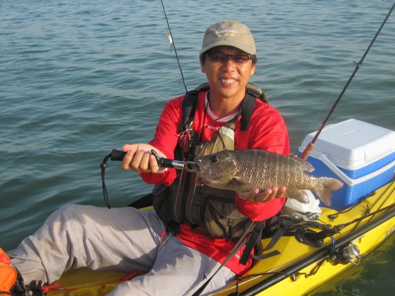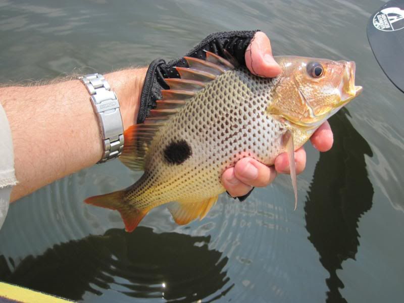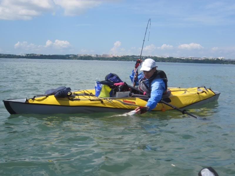 We were outside the markers, but not wanting to argue, we hung our heads and paddled away, with only a few fish in the tanks.