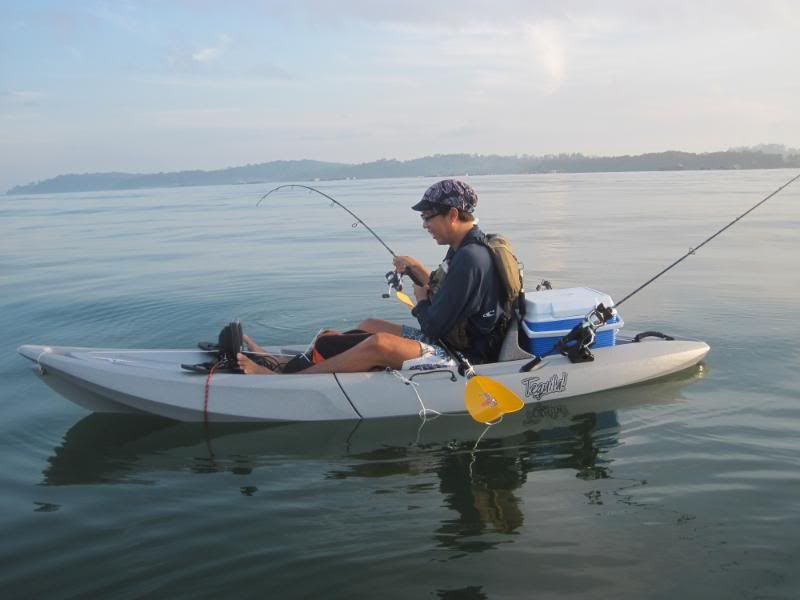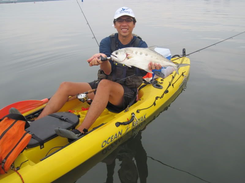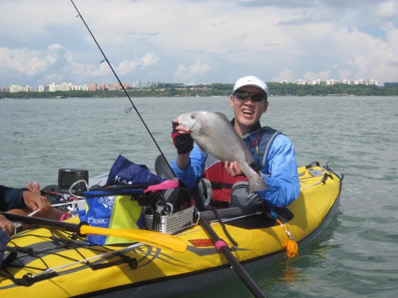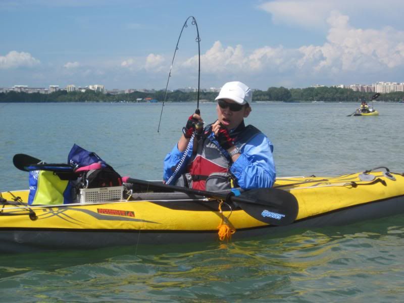 Change of venue! Today, we went over to Tanah Merah on the East Coast. We were greeted with blue sky and blue(ish) water. First on the list was to get some baitfish, so we ventured off to the nearest buoy. After a few drops, we had our first small fish going into the tanks, but the imminent arrival of a Navy RIB soon put a stop to our fishing here.