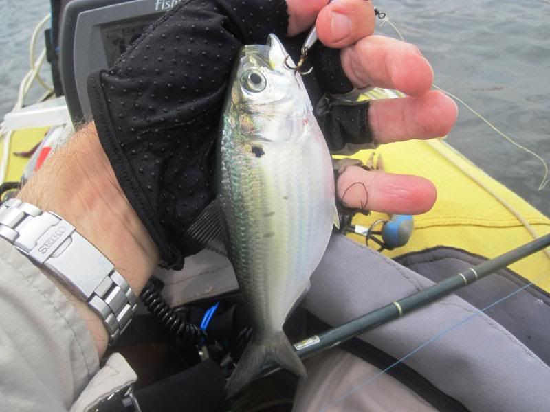 Anyway, not to be beaten, we decided to hook up a fish and drop it down into the depths. We were fishing in around 60 to 80 feet of water, but with a bit of wind to keep us on a good drift.