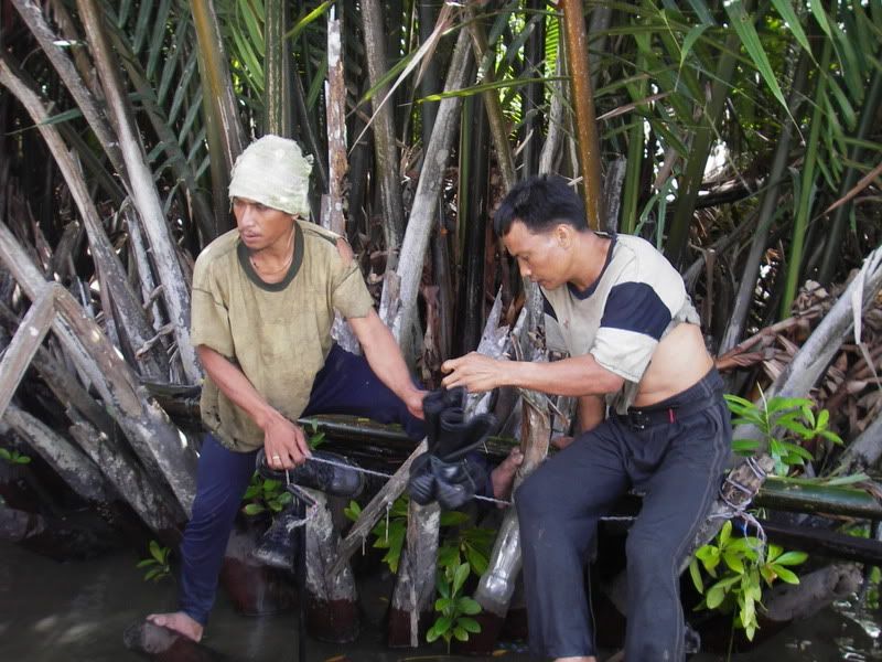 The polis under the command of Sarjant Kadir was quick to respond, less than 5 minutes we were on the polis launch, lanun, tiger, the boat driver with the polis pilot on the wheel and a support constable was flying across the water to Sungai Aiang…whheee what speed that polis boat has..With twin engines each gives 200 hp..Imagine just under 10 minutes they reached the stranded Filipinos. The polis were cautious too, with an M16 and a Styr machine gun pointing at them the strandees were questioned, after the polis were satisfied that they posed no threat whatsoever were they then allowed to board the polis boat…