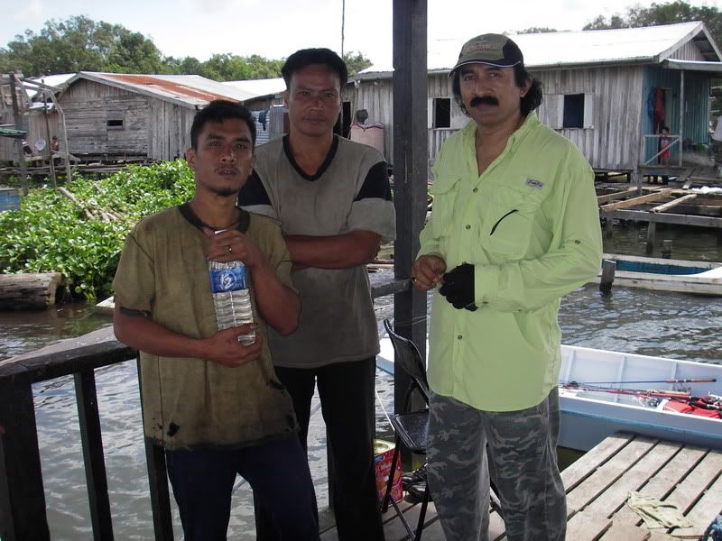 On the way to the polis post at Kampong Kuala Sungai Keruah disaster struck. Suddenly the 15hp Yamaha that was so reliable for the past 2 days hiccup..Hic..Hic.. The ever quiet boat driver just grins, and said ‘overflow’. Sure enough with a little twist here and a little twist there…the engine started coughing and moved at a 1/4 of its normal speed and then gained momentum, so off they went the soon to be heroes. Then again right in the middle of the huge estuary with the water a little choppy the Yamaha cough and cough again and completely stop, the boat driver just grin, a twiddle here a twidledum there, no way the Yamaha went to sleep. Out came the spanners and spare spark plug, the driver went to work silently while the 2 anglers waited but not quietly, Lanun went “the bush, the bush” to the driver, while tiger was wondering what? “A bush right in the middle of this choppy sea…”
