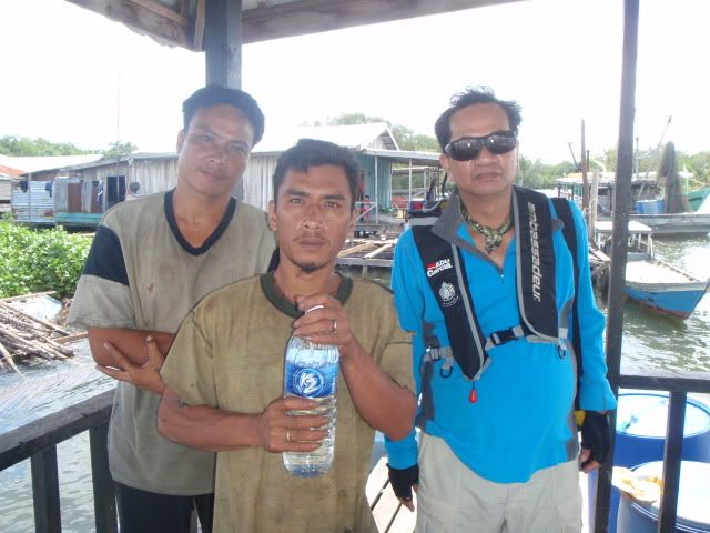 One of them started talking again in the same lingo but this time the pirate and the tiger could understand the word “help” and “polis”. Tiger having experience with Filipinos before now could understand the lingo spoken to be tagalog. And the word “polis” and “help” helped the LKGers decide that these two needed help. Further communication was established thru a mixed lingo and gestures. Yes they need help, they were wet and cold and also hungry. So the two happy anglers threw a bottle of drinking water and a tin of biscuits, a good thing of this trip organizers was that all boat were supplied with at least a tin of biscuits and 2 bottles of drinking water every time out fishing, to them. The strandees wanted the anglers to take them onto their boat but pirate and tiger decided not to have them on board but instead will report this matter to the polis. We had to be careful as these waters were notorious and we did not want to be ‘keel-hauled’ or ‘walking the plank’ .