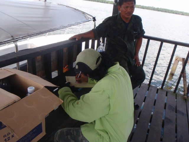 After spending sometime with the polis, the 2 anglers bade farewell, not before lanun made a written report. The polis on the whole were very quick, professional and very humane in dealing with the situation. The strandees were immediately given food and water, even cigarettes. The polis superior were contacted to get further info on the 2 lost pig hunters whose names are, Rolly de Luna and Cristino Cuevas and also to wait for further instructions.