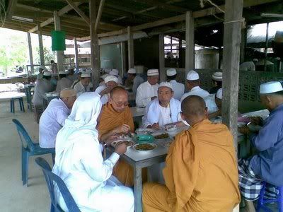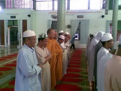 Perkara yang mungkin dipersoalkan ialah tok sami Buddha solat (berdasarkan pakaiannya).