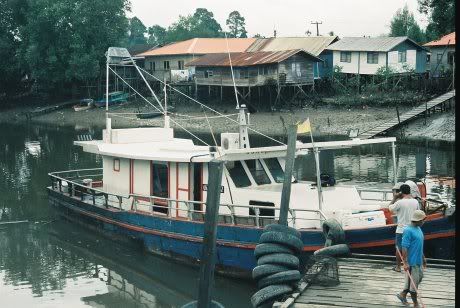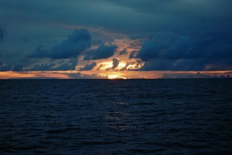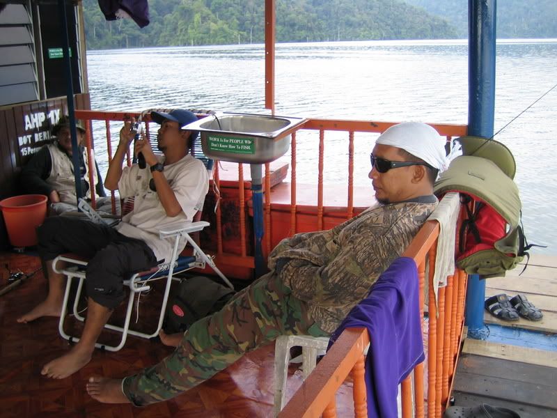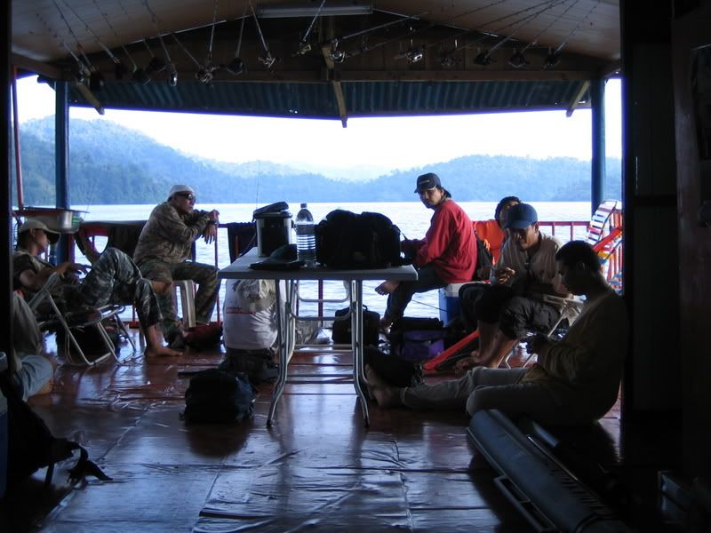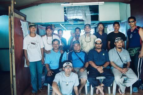 yup…bot bergerak keluar jam 2am…saya pun terus berdengkur kat dalam ruang tidur aircond…bangun awal pagi, nengok2 bot tengah parking kat luar kuala Sungai Apong aje…hemmmmm…rupa2nya tekong dah dapat maklumat yg ribut melanda kat tengah laut…memang kaki langit gelap waktu tu…pukul 7:30am barulah kami mulakan semula perjalanan yg mengambil masa 7jam utk ke kawasan pancing.