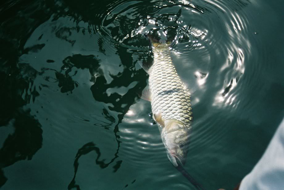 Lebih 50 ekor dilepaskan dengan sengaja oleh Tenggiri. Mungkin sebab dia tak minat nak cangkuk mata kail kat mulut depa ataupun memang pandai hit umpan sampai terbelah dua tanpa mengena pada mata kail.