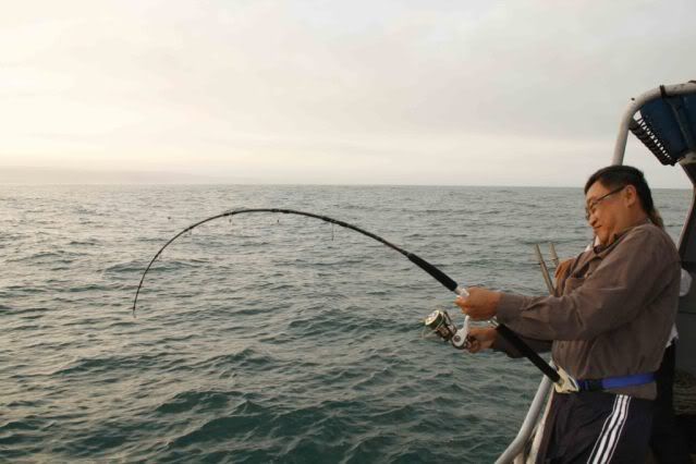 More practice at smiling at camera. No good have shot of your back while fighting fish. can’t tell who it is eh? hehehe.