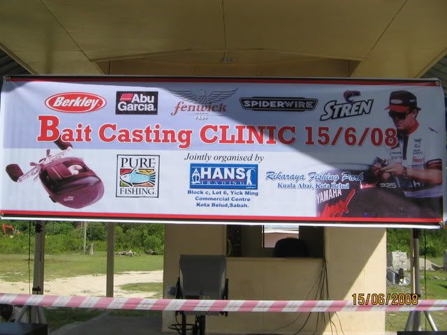 Pada ahad yang lepas 15-06-2008 satu klinik Bait Casting telah dianjurkan di Kota Belud. anjuran ini dijayakan oleh PURE FISHING MALAYSIA ( WAKIL - PHIL & STEVEN ), HANS TRADING Kota Belud dan Rikaraya Fishing Park, Kota belud.