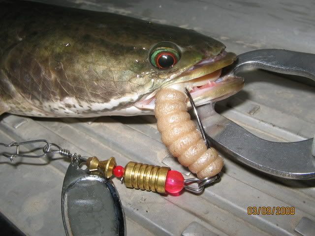 hasil untuk hari ini 03/09/08. juga dengan gabungan inline spinner + berkley powerbait 2" grub… haruan curut pertama…