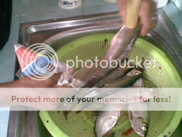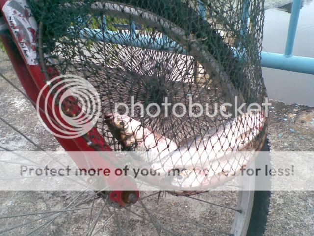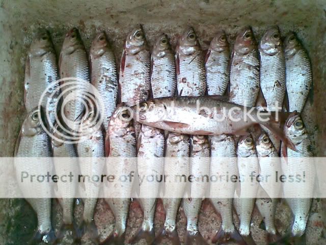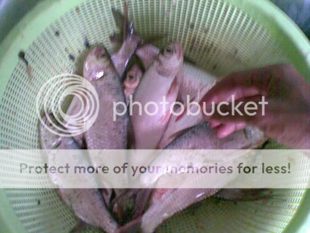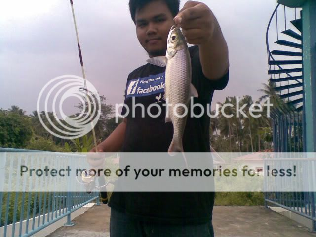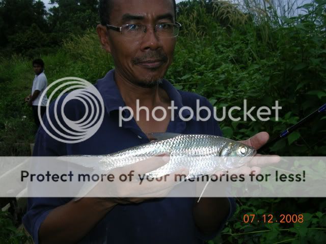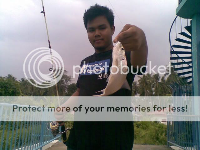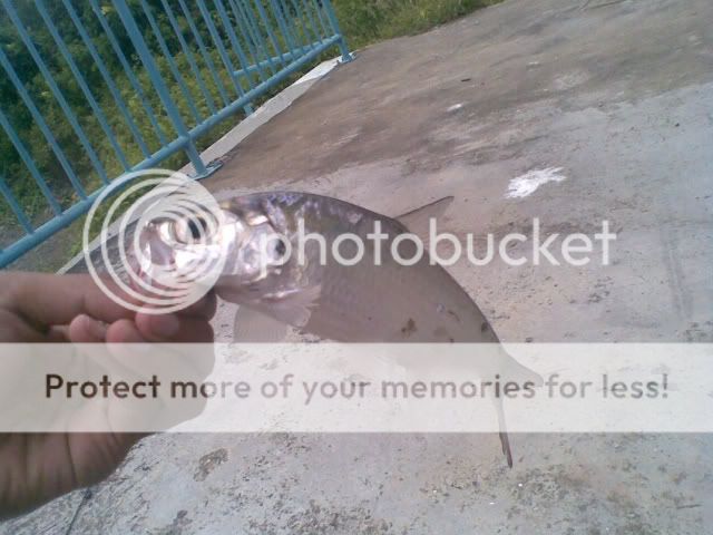 Adik datang dengan membawa umpan anak ikan sebungkus. Adik saya cangkuk terus anak ikan berpelampung. Tak lama kemudian naik seekor bulan.