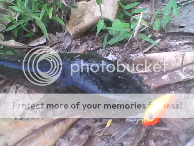 Ikan tersebut terus dilepaskan kembali. Saya meneruskan balik balingan dan merasa agak aneh sebab tiada sambaran yang berlaku. Tukar pulak gewang kerdil oren. Peliknya ada pulak ikan yang nak sambar. Ikan Haruan menyambar tatkala gewang dikarau secara laju.
