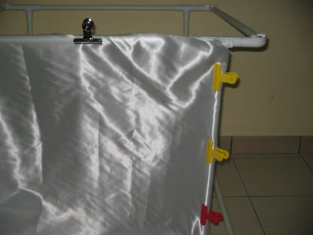 kemudian saya alaskan kain putih mengelilingi tiang box dan saya clipkan agar tidak kendur.
