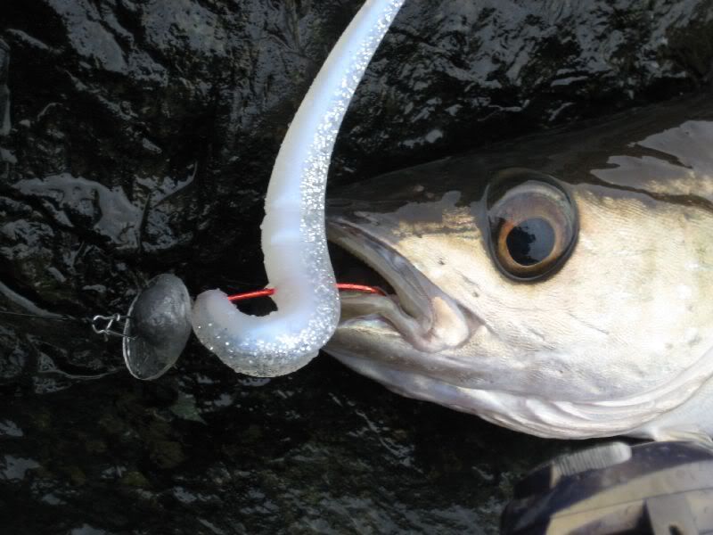 Not a new hi-tech lure/lure accessories.Got this idea when i saw a reproduction of this head by Aaron Marten.Got no choice other than this since i use to fish in the kelp and sea weed infested water;so i need the off-set worm hook feature to avoid it getting hung up and snag to the kelp when fishing through the kelp bed.Other than that,its hard to get a jighead with an off-set hook with an ideal/desirable weight(most of the time will be more than 1/4 oz or 7g) for my kind of fishing during that time. [img]http://i92.photobucket.com/albums/l6/rapalajoe/IMG_0004.jpg[/img] The bib will make any stickbait softies ie. slug-go swim in a "gedik mode" wiggle right and left,and slightly roll from side to side.the speed of retrieve will depend on the size of the bib.The bigger the size of the bib,mean that it can be retrieve so slow and still will produce action. Other than Aaron Marten berkley also have a range using the same principle. Never got time yet to try it with our local species,but from my past experience,even the cold water species are willing to bite. [img]http://i92.photobucket.com/albums/l6/rapalajoe/IMG_0089.jpg[/img] [img]http://i92.photobucket.com/albums/l6/rapalajoe/IMG_0053.jpg[/img]