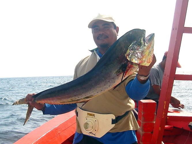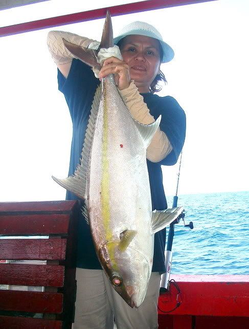 Our target is actually the sweet lips emperor or landuk as there are hundreds catched by others a week before. But, only few landed this time. I myself landed 3 of them range from 3-6kg. The fish can grow up to 8-10kgs and very good for table fish. Although we failed to achived our target, some of us have fun hooking other species like the dorados, amberjacks and varities of fishes as we fished from 50-125m depth.