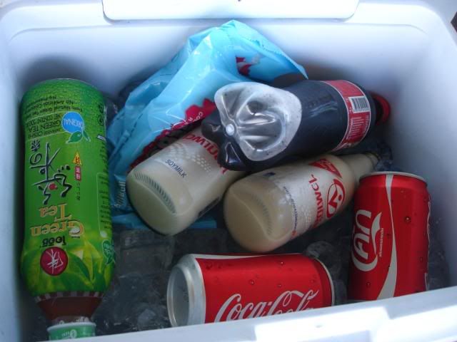 Our beverage for the day. Got soya bean . cola & mineral water