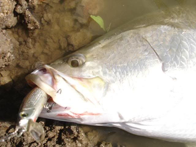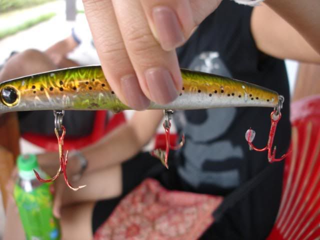Before he come I did inform him about the size and aggressive of the barramundi fishes over at Boon Ma. He kind of not so convince. Well…you must really try it yourself then you can come back and tell tale to your friends. He brought 2 full boxes of lures to Boon Ma and return with only 1 box of lures. ![]()
