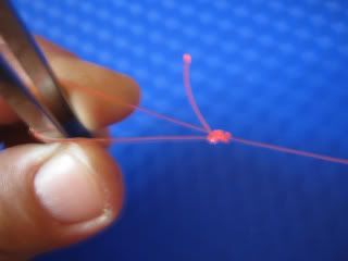IMHO the UNI KNOT is to avoid the line of your hook rig does not tangled with the main rig line. It’s something like to make it “keras” you know? Extra strength. You may need to sacrifice a few meters of your shock leader before you can make a neat & good flapper rig using this method[;)]