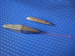 Ater the mainline is the leader with a single patternosta rig then theres the weight…they tie another leader to the weight…