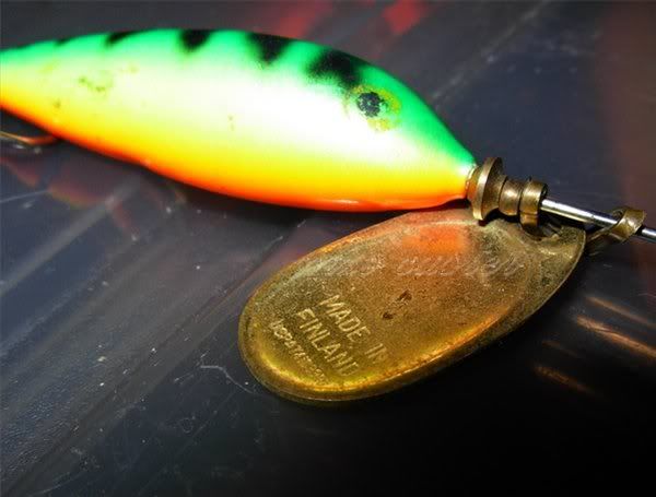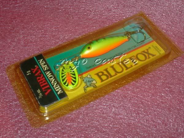 blue fox sekarang generasi baru kalu tak silap saya,yang lama punya ada cop kat kekipas tu siap ada dan triple hook takdak bulu fly saya ada simpan 2 biji ker fire tiger,body jenis bell..haruan,sebarau,tengas rasanya lah boleh…tapi saya punya no.4,berat sikit…kalo dapat no.2 ke no 3 memang best untuk haruan,saya belum pernah pakai grub ni kat spinner,sekarang kalou dapat kekipas mepps AGLIA DECOREE no 2,memang haruan..sukak!