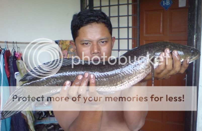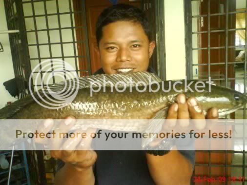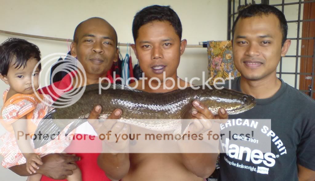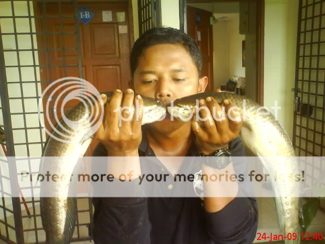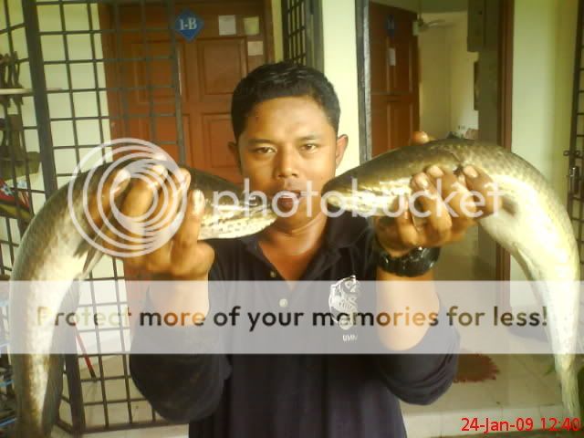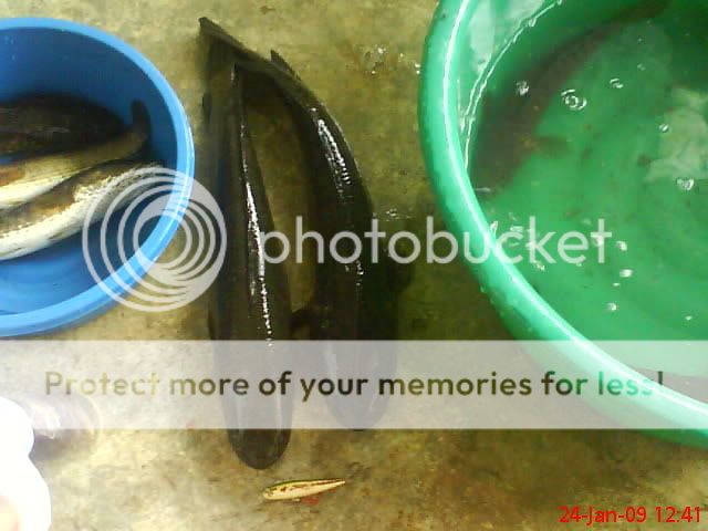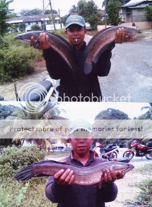 24/01/09 jam 0800hrs-1200hrs..aku,ramon n wak weng di lokasi tali air sg derhaka kola ganu..hasil yg paling lumayan dlm sejarah aku sebagai SNAKEHEAD HUNTER ni..di samping (1) kejadian HAIRAN BIN AJAIB di lakukan oleh si ramon,18 ekoq haruan lam masa 3jam..jumlah berat 8.2kg lepas timbang kat rumah toke ikan..malangnya gambar tak sempat wak nak snap..sb ramon dah tak sabar2 nak let go haruan dia..alasan takut mampuih harga turun..[:p].aku dpt 9ekor ja berat ngam2 5kg..tu pun nasib baik dpt ngorat 2ekoq OTAI parit tu…1.3kg sekoq n 1.1kg sekoq..wak weng pulak 5ekoq..punya syok ari ni…rugi poknik tak ikut..[:D]