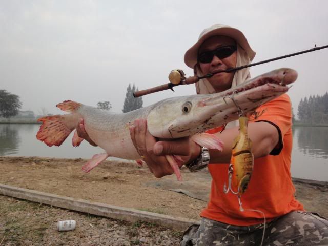 A giant 35KG Siamese Crap on thai made lure on my Shimano Calcultta. ![]()