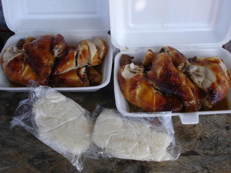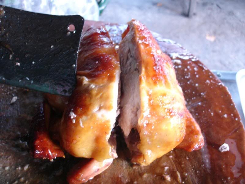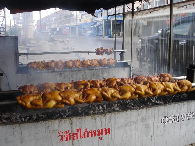 Very cheap (130 bahts 1 whole chicken) and delicious. Our friend here ordered 2 chickens + 2 pack of sticky rice to be brought to Boon Ma for makan.
