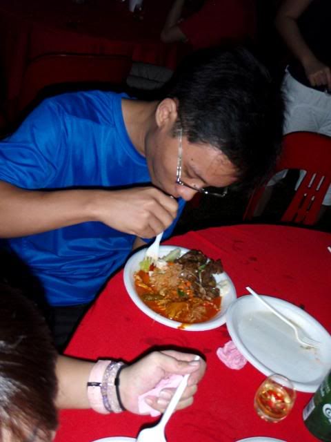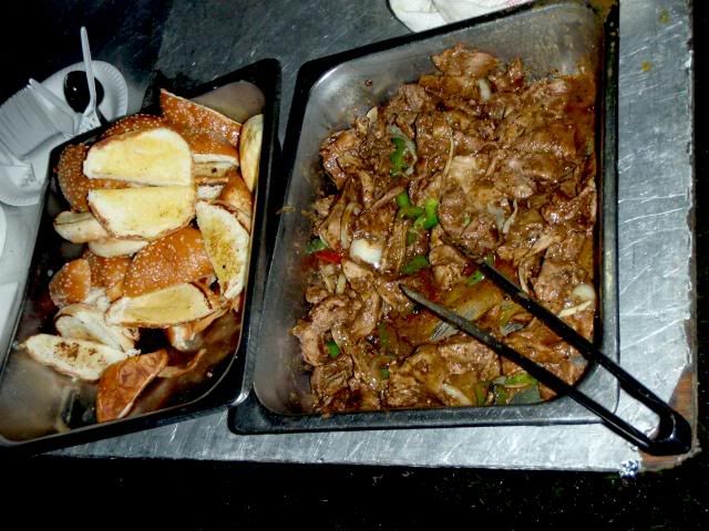 Chef Idris BBQ-ed the lamb den stir fry it with his secret black paper sauce…and garlic bread…![]()