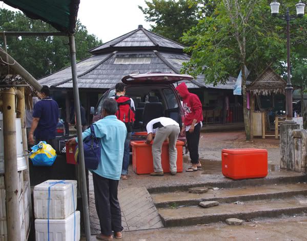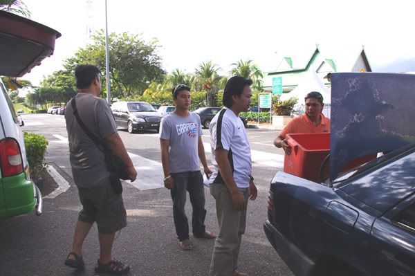 Setibanya Speedhobbies dan Rizalpin, barang2 pun dipunggah ke van. Nilah kali pertama aku jumpa speedhobbies. Buleh tahan orangnya……boleh tahan BESAR-lah ehehehehehhe. Bila aku tengok Rizalpin bawak bapa dia gi mancing, teringat plak kat arwah bapak aku. Bapak aku pun dulu minat sangat mancing ni. Sayu jap. Tapi syabas ler Rizalpin oi, aku respek kat hang pasai ni. Selagi orang tua kita masih hidup, patut kita layan jer dorang. Kalau bapak aku masih hidup tentu aku pun ajak pi sama. Dalam dok kalut2 punggah, Anakpin tanya,” Stesen minyak tu ESSO ka? Kalu ESSO kita tak buleh boh minyak kat situ.” Heran aku…” Apa pasai?” Dengan muka selamba dia jawab, “ Kita naik RUSA, mana buleh masuk stesen Rimau! “ Cessss!!! Sempat dia buat lawak noooo….seb baik aku tak pegang rod, kalu tak mau aku libas sedas dua…kihkihkihkih. Yang bestnya, kat stesen minyak tu lah kita buleh tukar matakail ehhhh matakail plak…matawang dan juga buat insuran kereta untuk masuk siam. Mudah sungguh…..