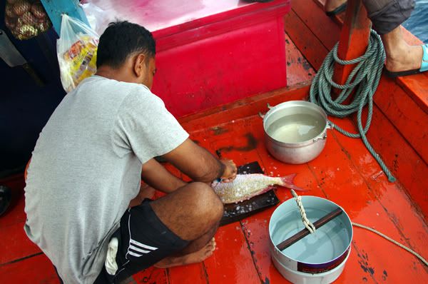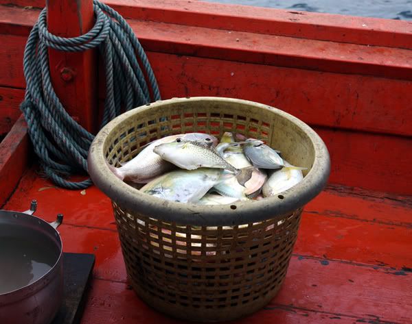 Sepanjang acara memancing di sana, aku perati servis tekong dan awak2 cukup tip top. Umpan dijaga, makan enak2 on time dan spot berubah-ubah. Dari Koh Rok balik ke Koh Adang, namun ikan mega semua malu nak jamah umpan. Mau jer aku tuba laut tu kalu laut kecik besar dalam besen. Walau bagaimana pun, cukup terhibur dengan ikan2 juvenil yang berlambak-lambak. Campak kail naik ikan, campak kail naik ikan, I likeeeee…ehehehhe. Alu-alu cukup banyak. Stress ketiak aku dibuatnya. Semua main pakai perambut steel. Masalahnya, bila pakai steel, ikan lain kurang nak jamah umpan.