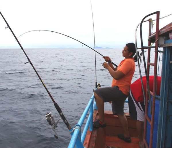 Inilah kali pertama aku berkesempatan memancing di ever-so-popular-spot yakni sekitar Koh Adang di Thailand. Mulanya aku nyaris-nyaris terbabas tak dapat ikut dek penangan exam akhir jatuh pada hari yang sepatutnya kami bertolak ke Pak Bara. Nasib baik Rizalpin bertindak cemerlang membuat liaison hingga berjaya menangguhkan hari perlawanan dalam masa kecederaan (last minit la tu) ehehehehhehe. Waduhhh..wadduuuhhhh…lama sungguh aku tak pi mancing rupanya…gian.