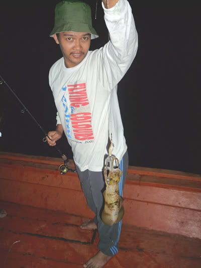 Alhamdulillah kali ni aku dapat tengok live cara orang sauk sotong. Innovatif jugak caranya. Mula2 dibuka lampu putih beberapa jam. Bila nak tengok ada sotong ke tak, dibuka plak lampu kuning. Bila lampu merah dibuka, sauk pun diangkat. Malam tu takla banyak sotong yang kami dapat…adala dalam seratuih lebih ekoq kot. Jadi laaaa…Alhamdulillah. Sebelum subuh Walad dah bertolak ke spot pertama. Bila matahari memecah langit, kami tiba di spot yang dinanti. Walad dengan gelendongnya, naik Ebek! Budi dengan gelendongnya, pun naik Ebek! Kami yang dengan rod dan reel mahai2, naik sebek. Sebek muka laa….ikan kocik2 jer. Hampeh. Sori ler takder gambaq. Kameraman pun nak mancing jugak. Kang dituduhnya aku pi untuk amik gambaq pemandangan ja…bukan buleh harap mulut budak2 Puaka Anglerz Tribe ni.
