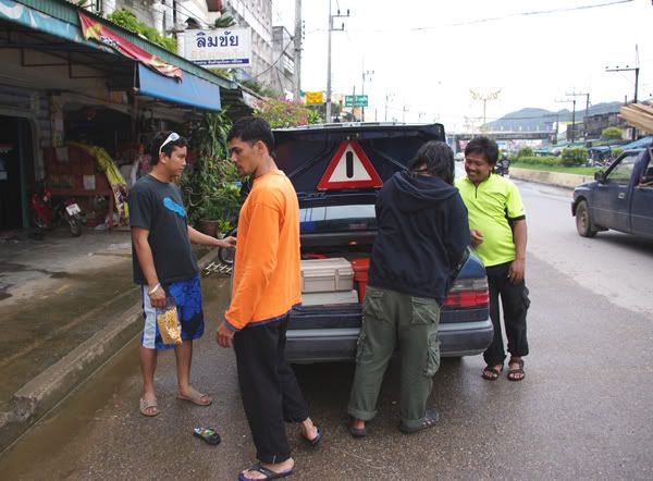 Lebih kurang jam 2 petang kami segera menuju ke Pak Bara di daerah Satun Thailand. Cuaca masa ni hujan sekejap-sekejap. Mendung jer langit. Aduhh….risau. Singgah sekejap kat pekan kecik beli bekalan makanan. Ni tugas Speedhobbies la…bab makan memang takde yang lebih afdal nak handle. Tapi yang aku heran, apasai beras kena beli kat tempat lain? Aik? Kedai anak Walad? Awek cun? Lain macam jer agenda ehehehehhehe