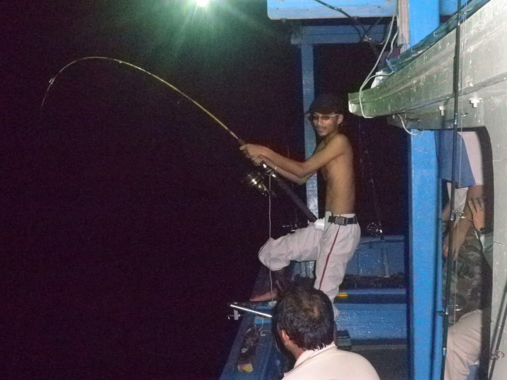 dimalam kedua kebanyak pemancing hanya melelapkan mata…mungkin sebab bosan dengan tekong y parking bot ntah ape2…hanay teman y sudi bjaga smpai pagi…namun hasil hanya lah sekor siakap merah 3kg++ dengan sekor kerapu y telah menobatkan teman juara jackpot ikan gred A…hehehehehe…