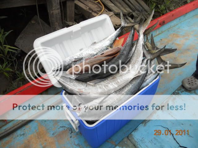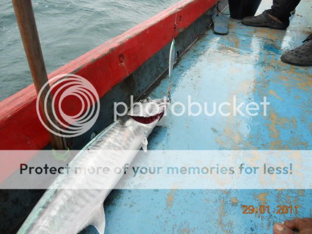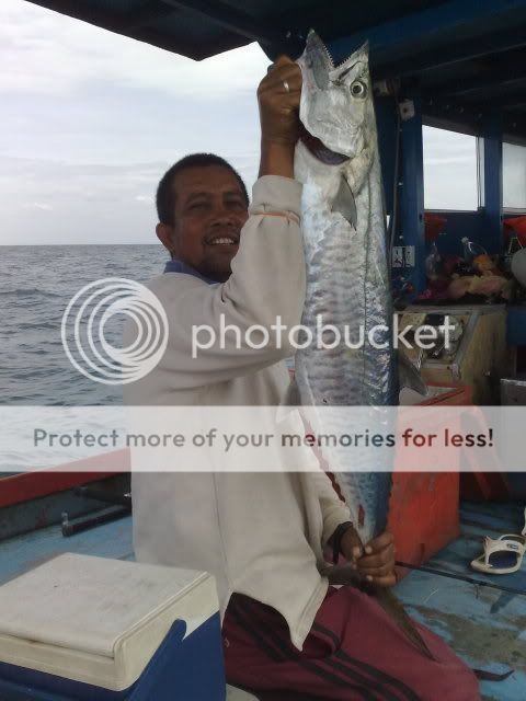 Lepas setengah jam, termunung yang di kasting oleg rudi di pollow oleh tenggiri anggaran saiz 3kg++….beliau terkejut lalu memberhentikan karauan, tenggiri pon sberhenti,terkejut lg beliau jerk sahaja termenung terus di sambaq tenggiri….fuhhh macam main popper bunyi..betoi2 depan mata…..hahaha