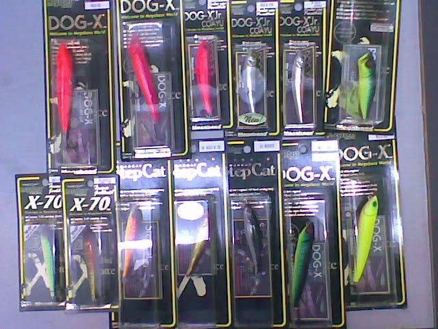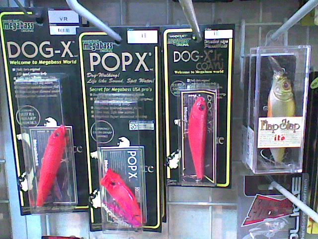 MEGABASS topwater lures, Dog-x, Dog-x Jr Coayu slide sinker, Pop-X, Flapslap.