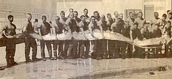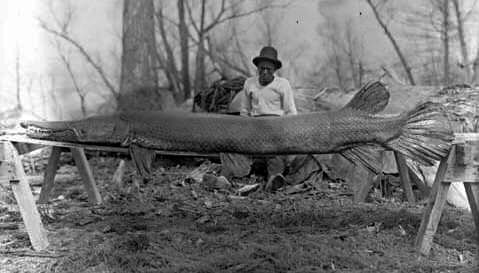 This ten-foot alligator gar was caught and photographed at Mhoon Lake in Mississippi in 1910.