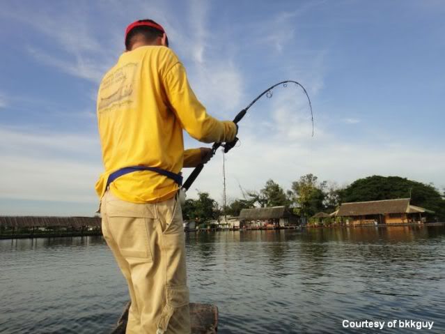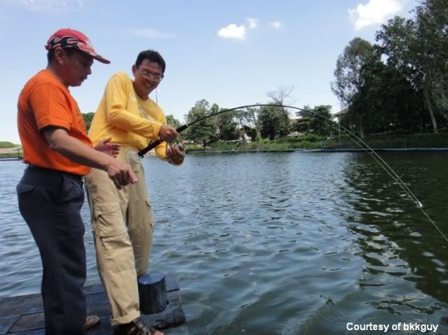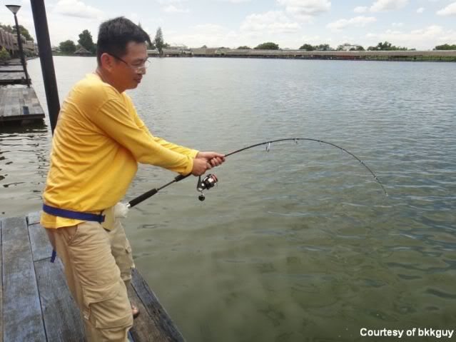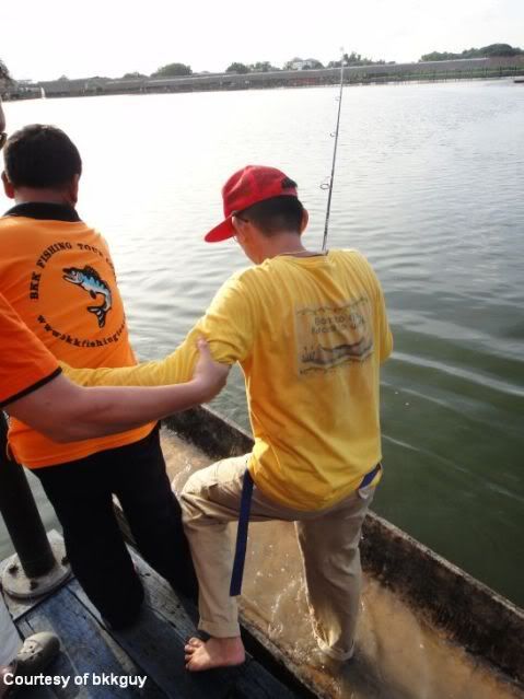 After a battle of TWO hours, standing on a platform, then standing on a sampan, then back to another platform, the fish was landed.