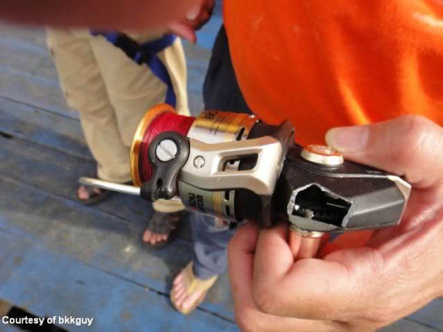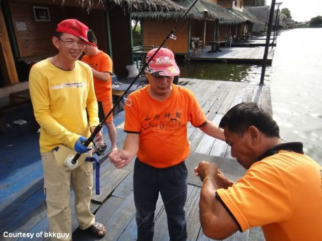 BSR’s fishing guide doing and expert job of joining the line. The reel is now the Penn Sargus (10lb-braid).