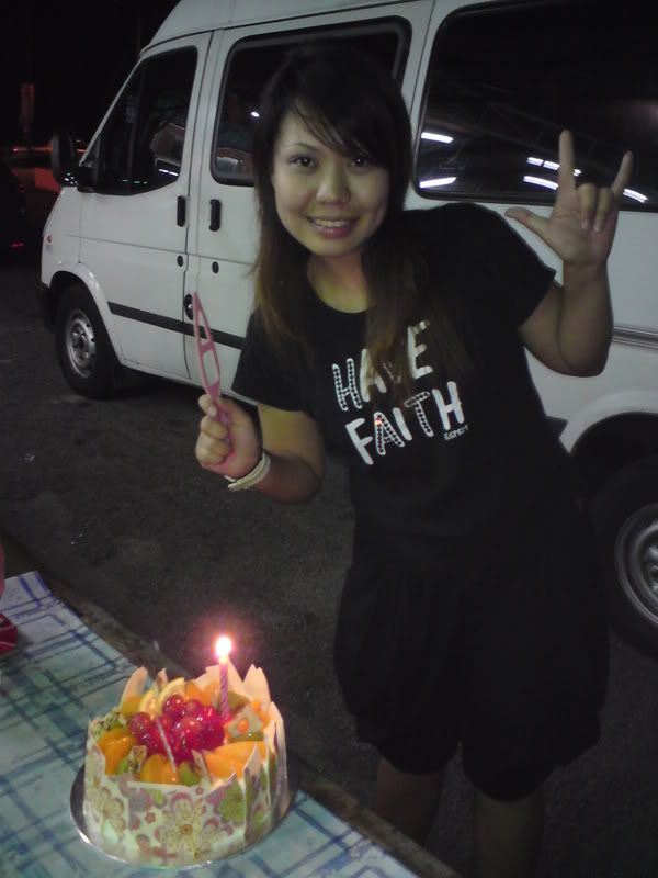 6th nov 7pm, 1 kaki fetch me to a pick up point where the transport is waiting to pick all of us up. About 8.30pm most of us had already arrived, we started to load all our barang barang n hopped into a passengers van transport which can sit about 12 person. We headed staight to the custom n chopped our passport, after tat we stop at 1 of the huge supermarket to buy some drinks, beers, food, chicken wings, hot dogs, crab meats etc…BTW the beer is 10 carton just for 7 kaki for 4D 3N fishing. Tat was like damn freaking horrible to me. After we had done all the stuffs tat we needed so we headed off again to next destination which is at tinggi for our supper. Hey…btw we have a birthday gal onboard wit us, so we cut her cake at tinggi once we reach tinggi for supper n we manage to make it just in time 12am!! Took a few shoots on her, lets see…