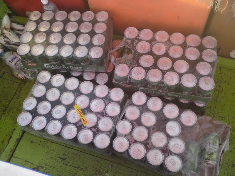 All of us faster load our bags, tackle, drinks, beers n everything on the boat n off we go to Pemenggil.