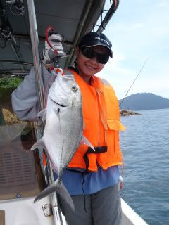 At this time we were fishing at the small rocky islands which happened to be on our way back to the jetty. The place looked fishy but the only action we encountered was when Defender had a hookup to a GT which hit, swam non-stop and was rewarded with his 15g Halco twister. Still it was quite an experience for the first timer. In fact, he has pencilled himself in for our next trip !