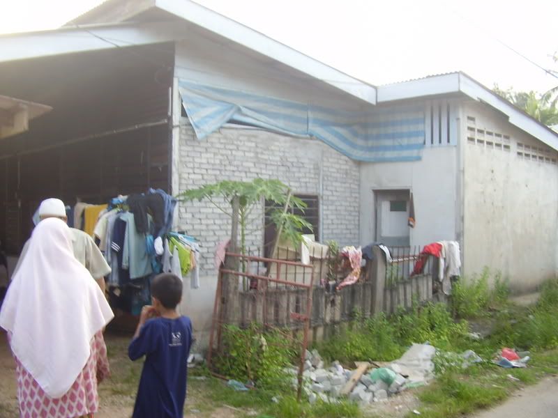 rumah sementara yang diberi tumpang oleh seorang penduduk kampung dengan percuma sementara menunggu rumah baru siap.