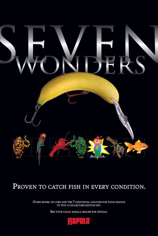 You will be seeing this poster in Kingfisher adventures and Sirip soon. Guess the correct lure model and the “seven wonder” colours and win yourself a very special limited edition display board. More details can be found in the magazines. [:D]