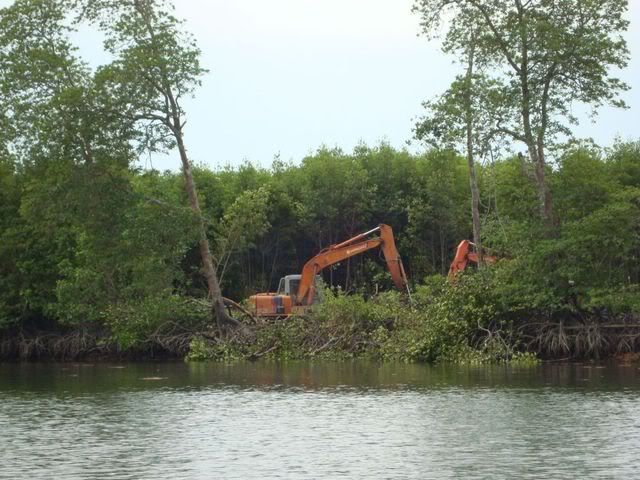 masa mancing tu sebenarnya aku diganggu oleh 2 raksasa besar yang nak merosakkan ekosistem sungai. oleh kerana tak berani lawan sebab bro tubuk tiada sana. maka aku cuma dapat ambil gambar je nak buat repot kat jabatan pendaftaran negara. makhluk perosak.. benci betul aku tengok muka raksasa ni. habis sungai tempat aku bermain. huhuhuhu..