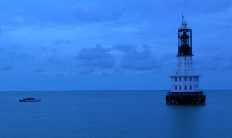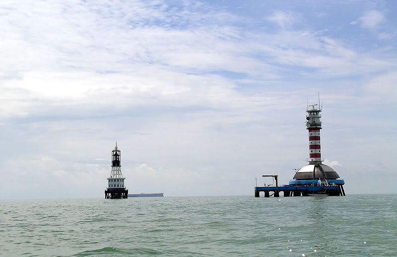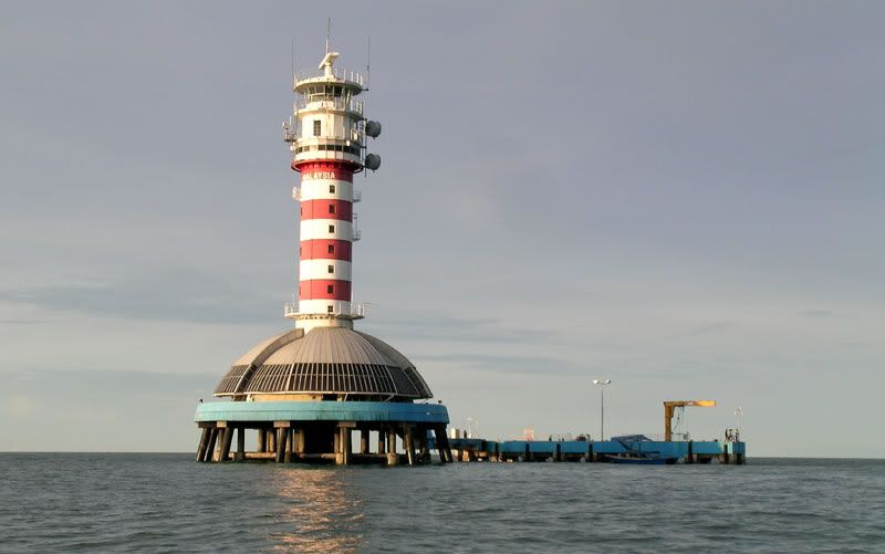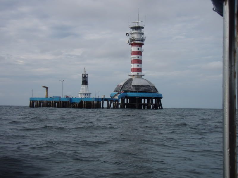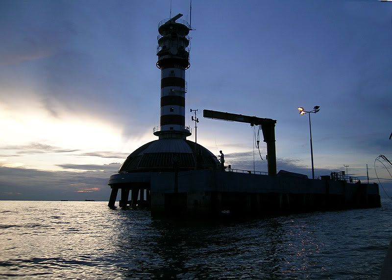 OFB Lighthouse: An aid for navigation and pilot at sea, a lighthouse is a tower building or framework sending out light from a system of lamps and lenses or, in older times, from a fire. Lighthouses are used to mark dangerous coastlines, hazardous shoals, and safe entries to harbors and can also assist in aerial navigation. Because of modern electronic navigational aids, the number of operational lighthouses has declined to less than 1,500 worldwide. Situated 10 nautical miles west of Port Kelang. (Follow 170 when you are out from the west port entrance)