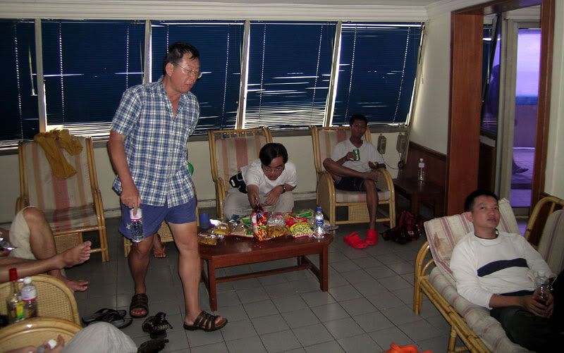 By the time I was back, I went into party mode. Had a shower, cleaned up, and started to have beer with skunk and company. We started to know each other well and I took out the VSOP cognac to share. Supper was served and all were tired. I went to bed and realized there was no space. Had to squeeze with Ah Boy and went into dream land!