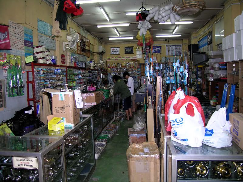 Kurao King started singing about 100lbs leaders, big fishes, big baras and all went into a big shopping mode. Actually, his shop has many good stuff and I could had come up to stock the essentials. We bought a few rod stands which made up for the ones Ah Boy left at home. Some of the items are cheap and you might want to buy there! There is supposed to be a good nice coffee shop but it was not open. So we adjourned to Bak Kuk shop.
