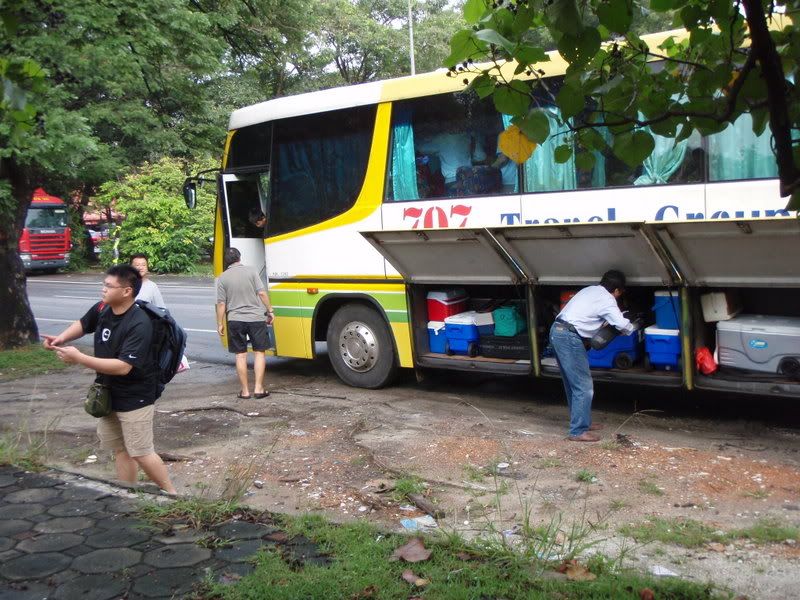 Bus was on time, arriving at about 10:15pm and pack up was quick. Due to the many different items each party brought, there was some confusion. But despite the large amount of items and variations, the bus took in the full loads! 20 over people were too many, but we were lucky everything went in nicely.