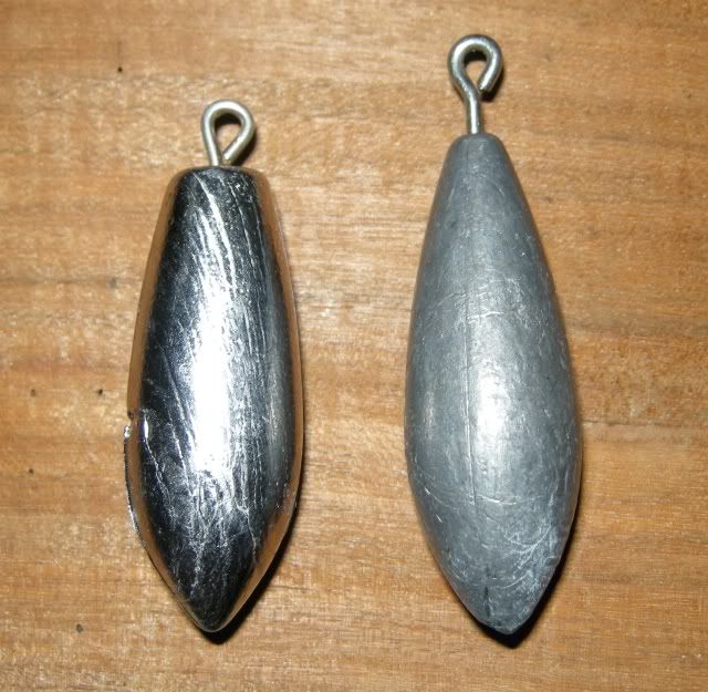 just want to show the diffrent between this two type sinkers for your own eye review, left is from moulded from NAMIX BULLET right from UK HOOKS, both weight 125gm.