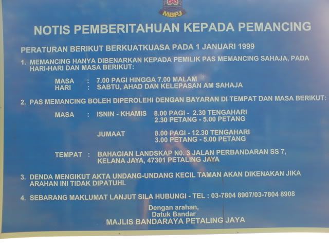 The only place I can go fishing now is the lake near Taman Paramount Putra LRT station</font id=“blue”>.